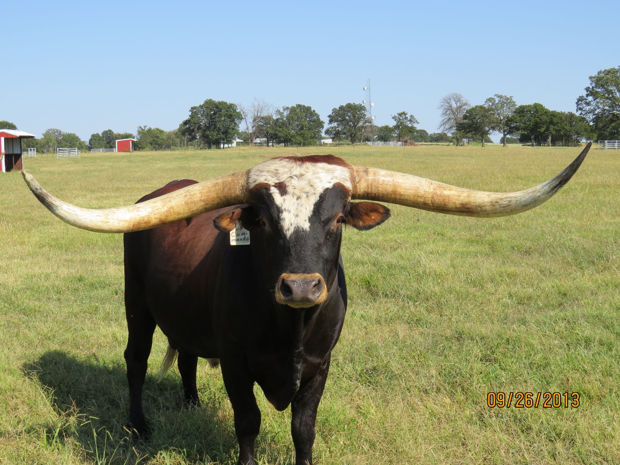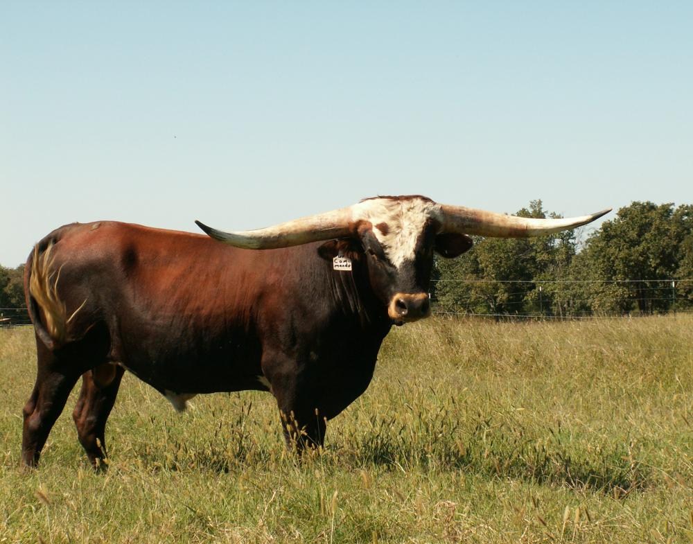 This magnificent double bred Hunt’s Command Respect bull boasts 85” TTT, 107” Total Horn with 17 ½” bases. Commando just turned 15 years old and has given us beautiful calves out of several different female bloodlines. He is the Grand Sire of HR Rosetta that recently sold at public auction for a record breaking $700,000. His pedigree goes back to all seven families.